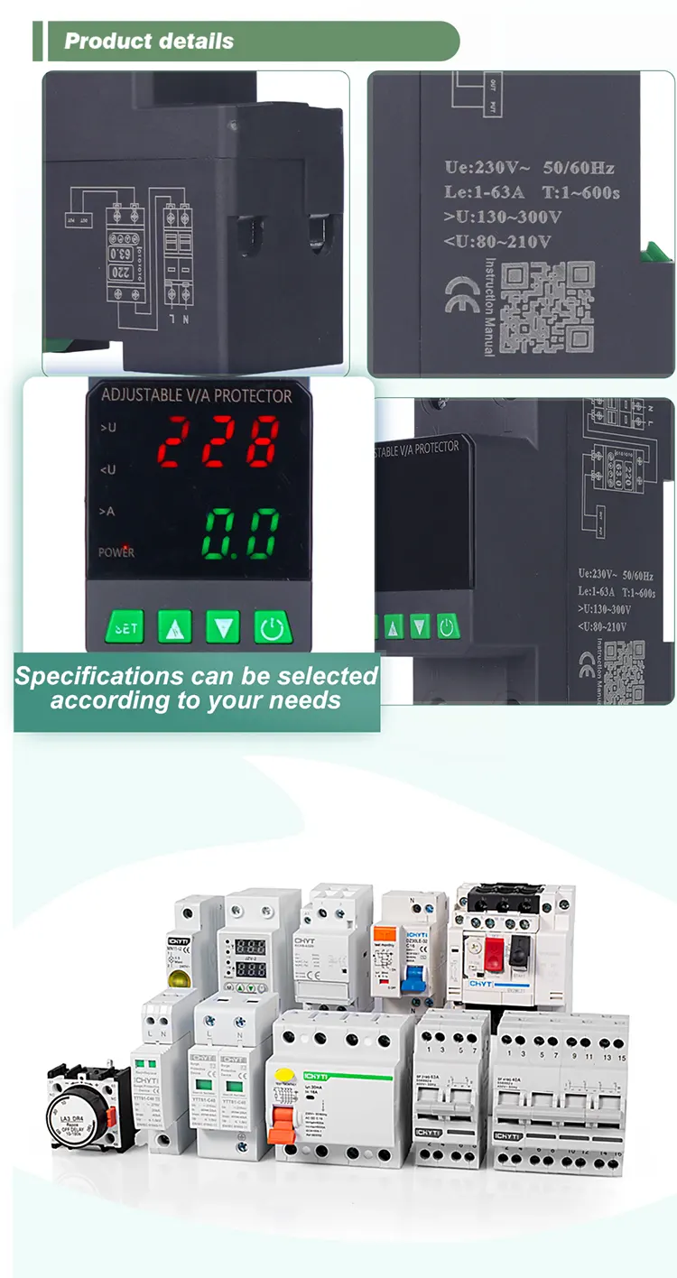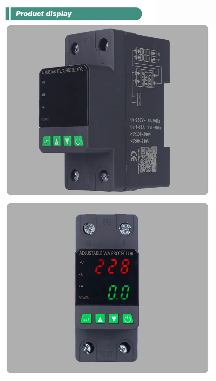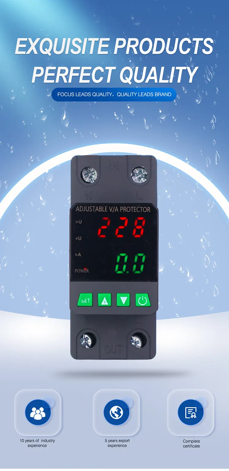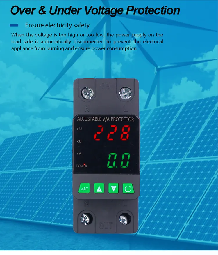 Vybavený digitálnym displejom a vyrobeným s importovanými modulárnymi elektronickými komponentmi, má vysokú spoľahlivosť a výkon. Chránič automaticky a rýchlo odreže napájanie počas abnormálneho napätia (ako je prepätie, podpätie alebo kolísanie mriežky) a obnoví napájanie po návrate napätia do normálu.