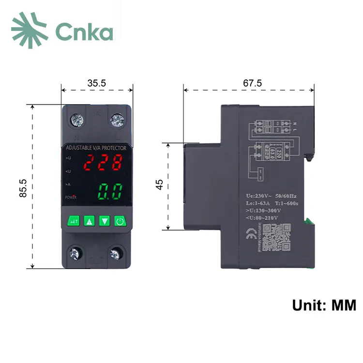 CNKA je známy čínsky dodávateľ, ktorý poskytuje veľkoobchodný protektor dvojitého displeja. Tieto zariadenia sú navrhnuté špeciálne pre jednofázové obvody AC 220V, 50 Hz s menovitým prúdom 63A, čo z nich robí ideálnu voľbu na ochranu distribučných skriniek alebo vodičov, ktoré dodávajú napájanie jednofázovému zariadeniu.