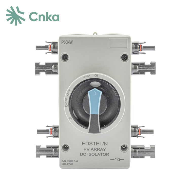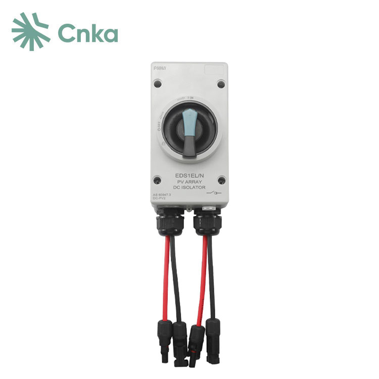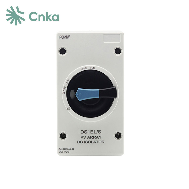 Značka CNKA ponúka veľkú zľavu na vodotesné otočné oddeľovacie spínače, ktoré sú navrhnuté ako uzavreté oddeľovacie spínače s jednosmernými prúdovými kapacitami 1000V a 32A, vďaka čomu sú ideálnou voľbou pre solárne systémy na výrobu energie. Tento spínač sa zvyčajne inštaluje medzi pole solárnych panelov a invertor na streche, čo umožňuje izoláciu fotovoltaického poľa počas inštalácie alebo údržby. Vodotesnosť tohto rotačného izolačného spínača je IP66, vhodná pre vonkajšie aplikácie.